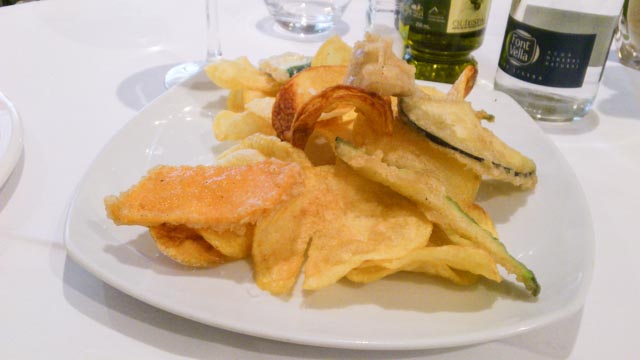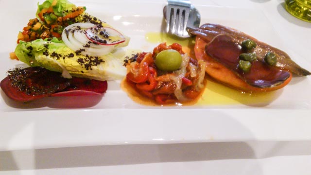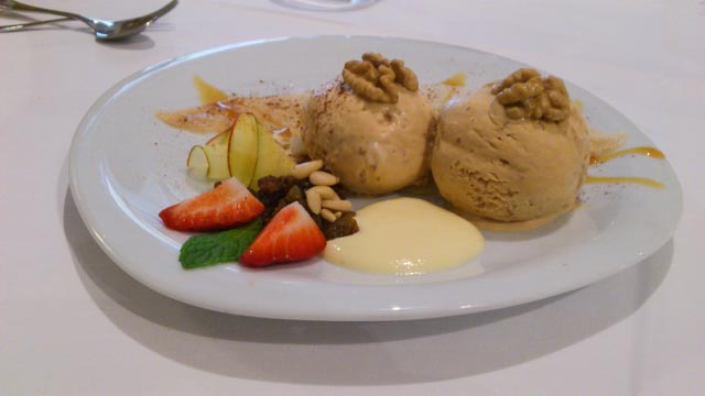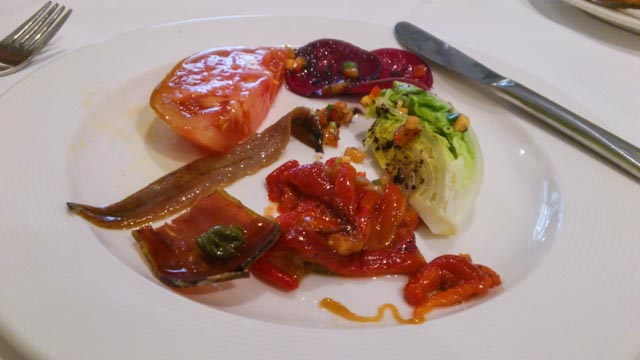 We opted for an appetizer salad that included anchovies, esgarraet, mojama, tomato and lettuce. Although meant for one, it was just perfect for two. For our main course we ordered a parrillada de pescado y mariscos for two. When it arrived at the table we were taken aback by the quantity of fish and shellfish on the serving plate. Filets of tuna, swordfish and monkfish had been cooked to perfection on the grill. The red shrimp, the squid, the sepia and the cigalas had also been grilled. As if that wasn’t enough there were also fried shrimp and fried calamari on the plate. The dish was served along with a bowl of potato chips that had been freshly fried and some tempura vegetables. In case you were wondering what the price for this seafood feast was, try 35 Euros. For dessert we split some ice cream. We finished our meal by chatting with the three sisters and when we left the restaurant it was a little after 5:00.