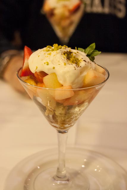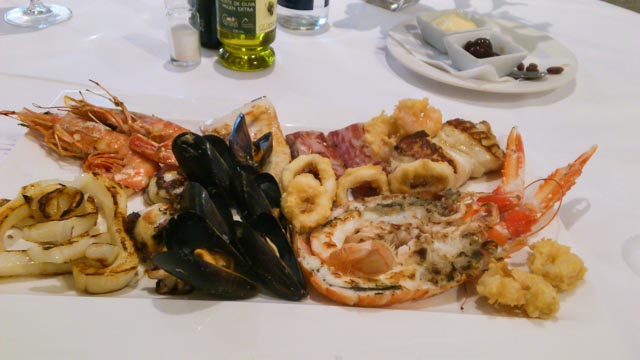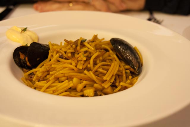 Susan began her meal with a salad that featured a variety of greens, as well as fresh asparagus, artichoke, broccoli and green beans. I ordered the octopus that was served on a bed of mashed potatoes. Susan’s salad was very fresh tasting and my octopus that had been marinated and grilled was both tender and tasty. Susan’s main course was couscous and lamb. I had a fideuá marinera that was excellent. We had a trifle for dessert made with sponge cake, crème anglaise and fresh fruit. We finished our meal with a café cortado. It was 5:00 PM when we finally left the restaurant.