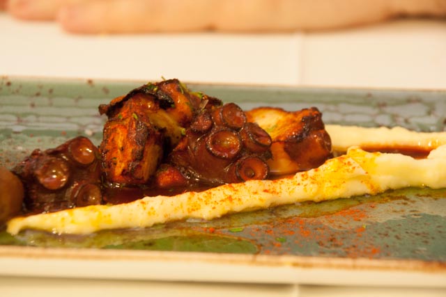 Yesterday turned out to be a rather quiet day for us. We did get out to Seu Xerea for lunch and we had an excellent meal. It has been a while since we visited. The last time we were there was when Jordi was doing the cooking. The place has been remodeled and they did a fantastic job. Everything is slick and modern with a preponderance of wood. Even the bill is delivered on a wooden tray. We sat down and studied the menu and had a hard time making a decision. Troupers that we are, we finally decided on our choices.