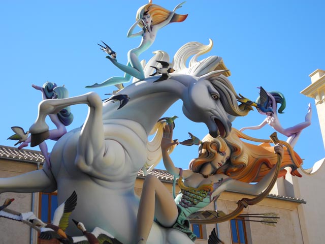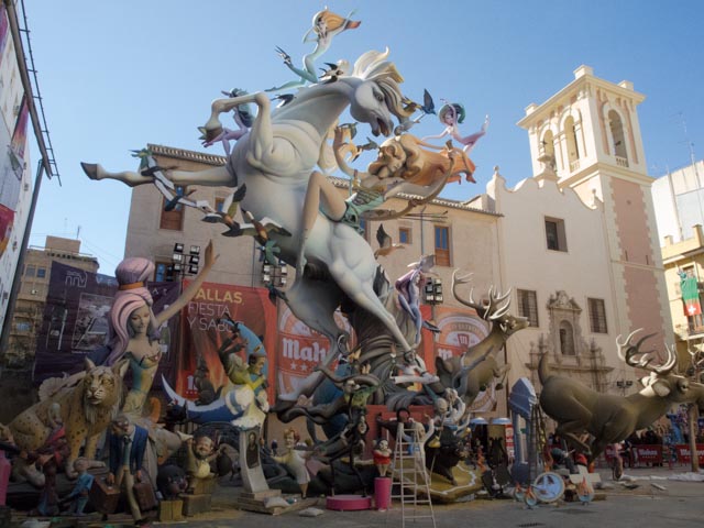 Around 9:00 we went exploring and took a look at several of the fallas nearby. We then found a seat in a crowded bar and ordered a couple of tapas and watched the world go by. We were in bed by 12:00, just in time to hear the fireworks display that was taking place in the Turia. It lasted a good twenty minutes and soon thereafter we fell asleep.