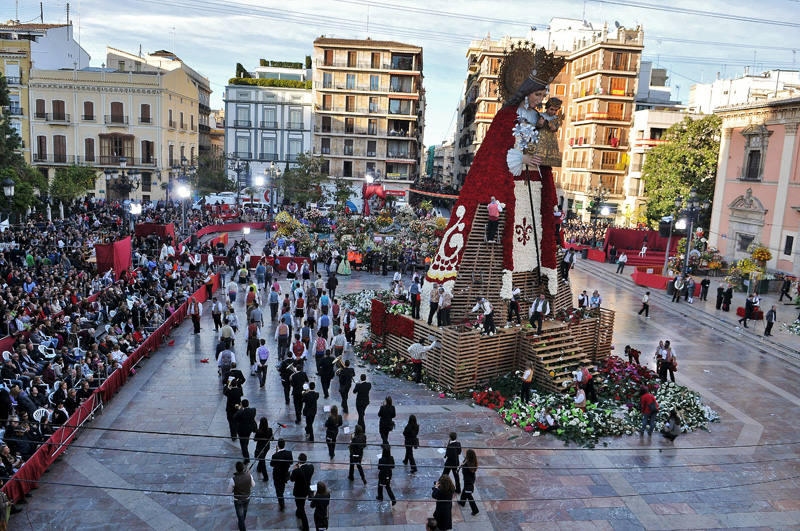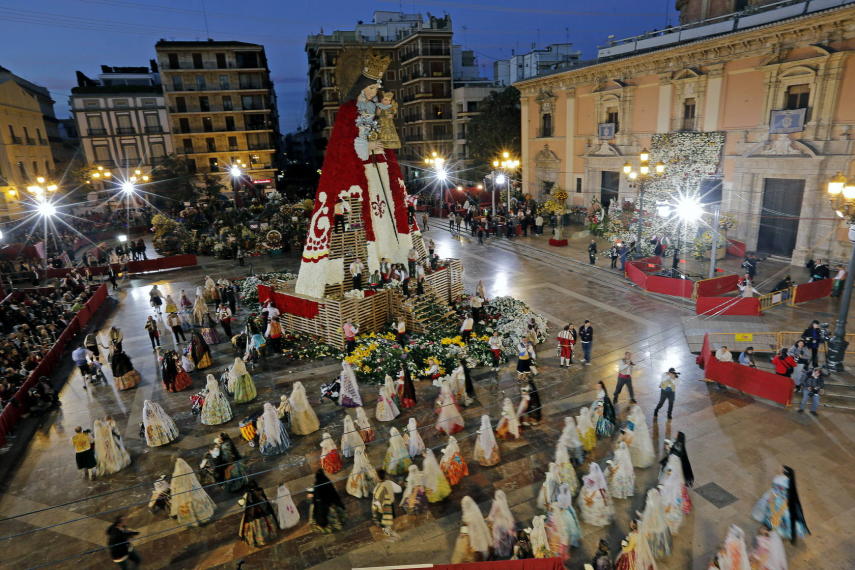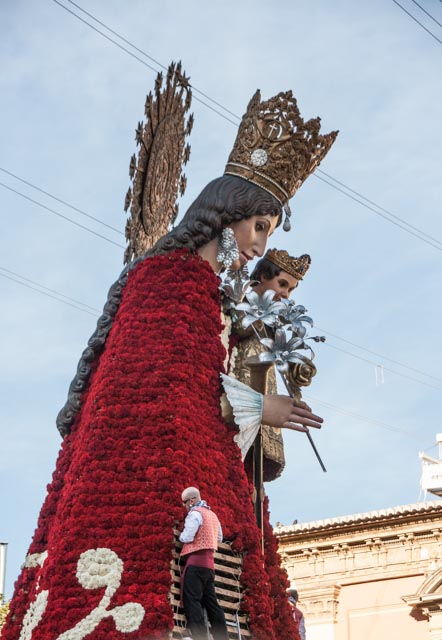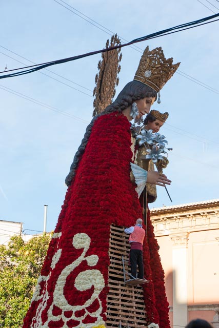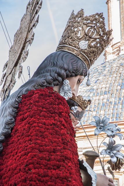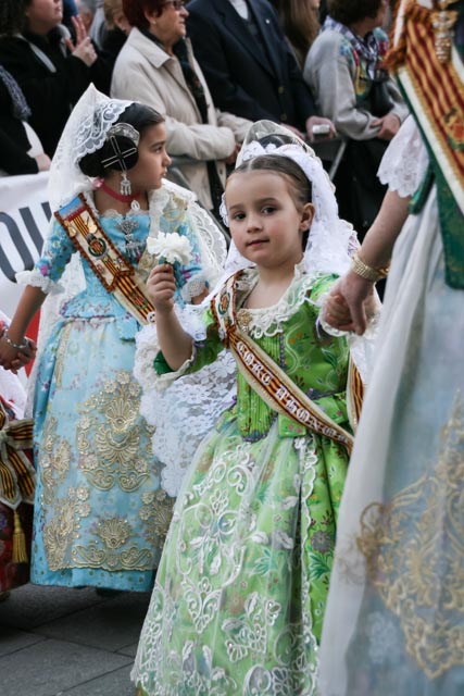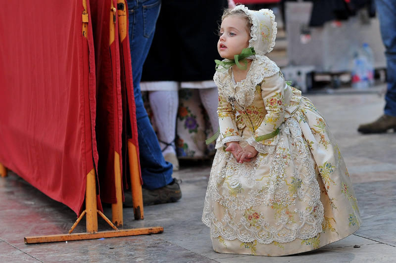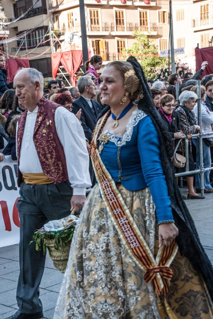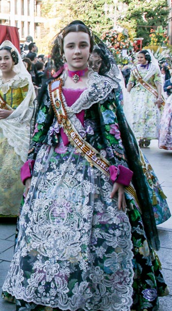 A little after 8:00 we thought we would go in search of a drink and a tapa. Our first choice was closed, but since we were a stone’s throw away from our old neighborhood, we decided to walk down to Cervecería Las Torres and have a drink there. Things were hopping . but there were a couple of seats by the window. We ordered some bravas, boquerones and albóndigas as we watched the world go by. Paco poured us a small shot of his favorite tequila, don Julián, and after we downed it, we happily went on our way. The street was filled with falleras headed to La Plaza de la Virgen with their floral offerings. We went to be a little before midnight and were briefly awakened at 1:30 by the thirty-minute fireworks display that was taking place in the Turia Gardens.