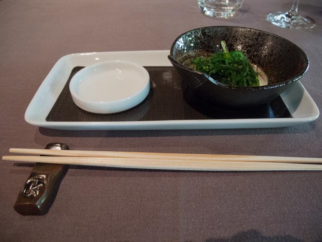 Yesterday Susan, Klaus, Zahava and I walked over to the Westin Valencia to try out the new Japanese restaurant, Komori, located in the hotel. We stopped by Zahava and Klaus’ apartment and from there we walked to the hotel. There were a number of diners enjoying their meal when we walked in. To be honest, the meal did not have a good beginning. Klaus and Zahava are vegetarians and there were a couple of items on the fixed menu they could not eat and that began what seemed to be a very strange discussion with the hostess who was to take our order.