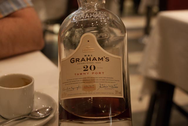 It was close to 2:30 when we had finally put everything away and decided to go in search of lunch. We asked for a recommendation and the front desk recommended a nearby restaurant called El Solar Dos Presuntos. It appears to attract a business clientele judging from the number of suits we saw in the restaurant. We were seated promptly and proceeded to study the menu. Even before we ordered they delivered a plate of charcuterie, a plate of chees and a plate of olives. This appears to be a tradition in most restaurants we have visited here. In some cases they present you with choices from which you can pick and in other cases they just put them on the table. There is a charge for these pre-meal treats. For lunch we ordered codfish cakes that were outstanding and a shrimp curry with rice. For dessert we shared a typical Portuguese pastry and then it was time for coffee and a glass of Port. Since it was our first meal in Portugal we opted for a 20-year-old Port that was exquisite.