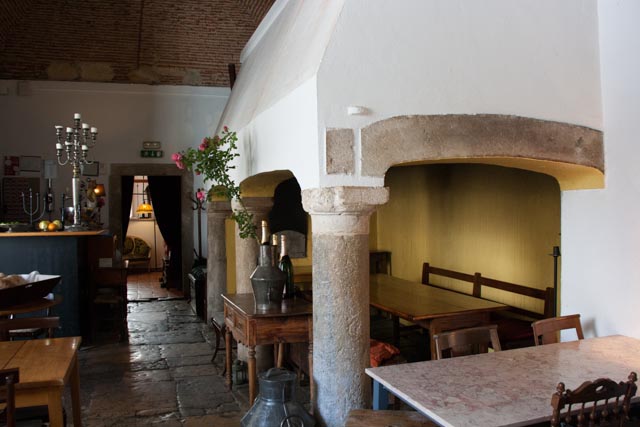 When we reached the terminus of the uphill trip, we looked around and boarded the very same tram for the downhill adventure. It was less crowded on the way down and in less than fifteen minutes we had been delivered to our starting point. Our stomachs were starting to growl and that was an obvious and clear sign that we needed to find a restaurant. Our friend, Brian, Had recommended several to us and we decided to try one of them out. We hopped a cab and he delivered us as close as he could to A Travessa, a restaurant housed in a former monastery. When we walked in, we were the only diners and that did not change while we were there.