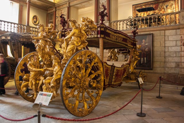Properly fortified, we struck out again. Our first stop was The Coach Museum that displays a goodly number of the horse-drawn coaches that were used by Portuguese royalty on any number of state occasions. The two words that come to mind when viewing them are ostentatious and obscenely expensive. However, I guess you had to do something with all that gold that was pouring in from the New World. There are also a couple of sedan chairs on display. Our visit lasted thirty minutes and we had a very pleasant experience at the ticket booth. When I asked for two tickets the gentleman selling tickets asked me how old I was. I told him I was 72. He then inquired why I didn’t ask for the Senior discount and I replied that I did not have my Spanish ID on me that proves I am 72. His reply was most enlightening. He said, “What good is the world if you cannot take someone’s word for something?” From that moment on we asked for and received the Senior discount for all our entrances.