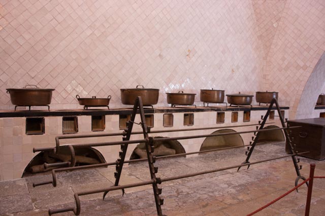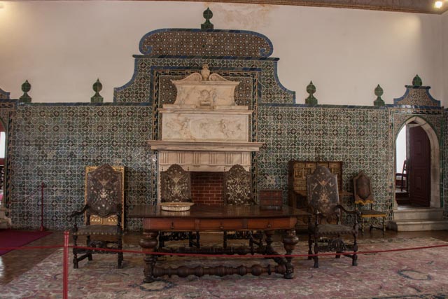 The visit was most interesting and the palace contained what I have come to expect when visiting palaces. I did not ice that there were not many canvases, tapestries or mosaics on the wall. A lot of the stained glass is in the process of being replicated. There is a great deal of Moorish influence throughout the castle and my favorite space was the kitchen with what must have been sufficient space to have five or six wood fires burning simultaneously. Having completed out tour of palace number one, we headed off to palace number two, the Palacio da Pena.