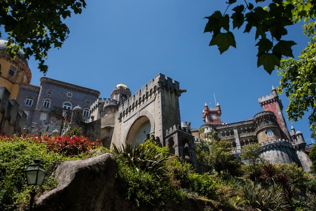 The palace rests atop what must be the highest point in Sintra. It is a six- kilometer trip up a winding road that will lead you to the entrance of this palace. There is a tram that then takes you up another winding road to the very entrance of the palace. Be prepared to do a lot of climbing to reach the various levels of this palatial beauty. You can walk all around the castle by way of the surrounding walls and the view from the top of the castle is absolutely breathtaking. This view alone makes the trek itself worthwhile. When we finished our visit we took a bus back to the center of town.