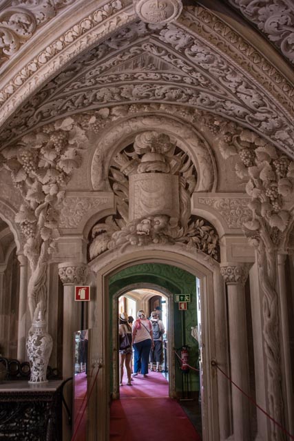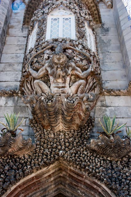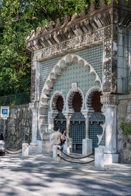 Our goal for the day was to visit Sintra, another forty-minute train trip from Lisbon. This train leaves from the Rossío station and we just managed to catch the 11:38 train. We arrived a little after 12:15 and exited the station heading for the center of town. As you make your way to the center of town there are a number of sculptures that are treats for both the eye and the soul. When we reached the center of town, we stopped for a cold drink and then moved on to our first destination, The Sintra National Palace. It is the only surviving palace from the Middle Ages and, at the moment, is undergoing extensive exterior and interior reconstruction.