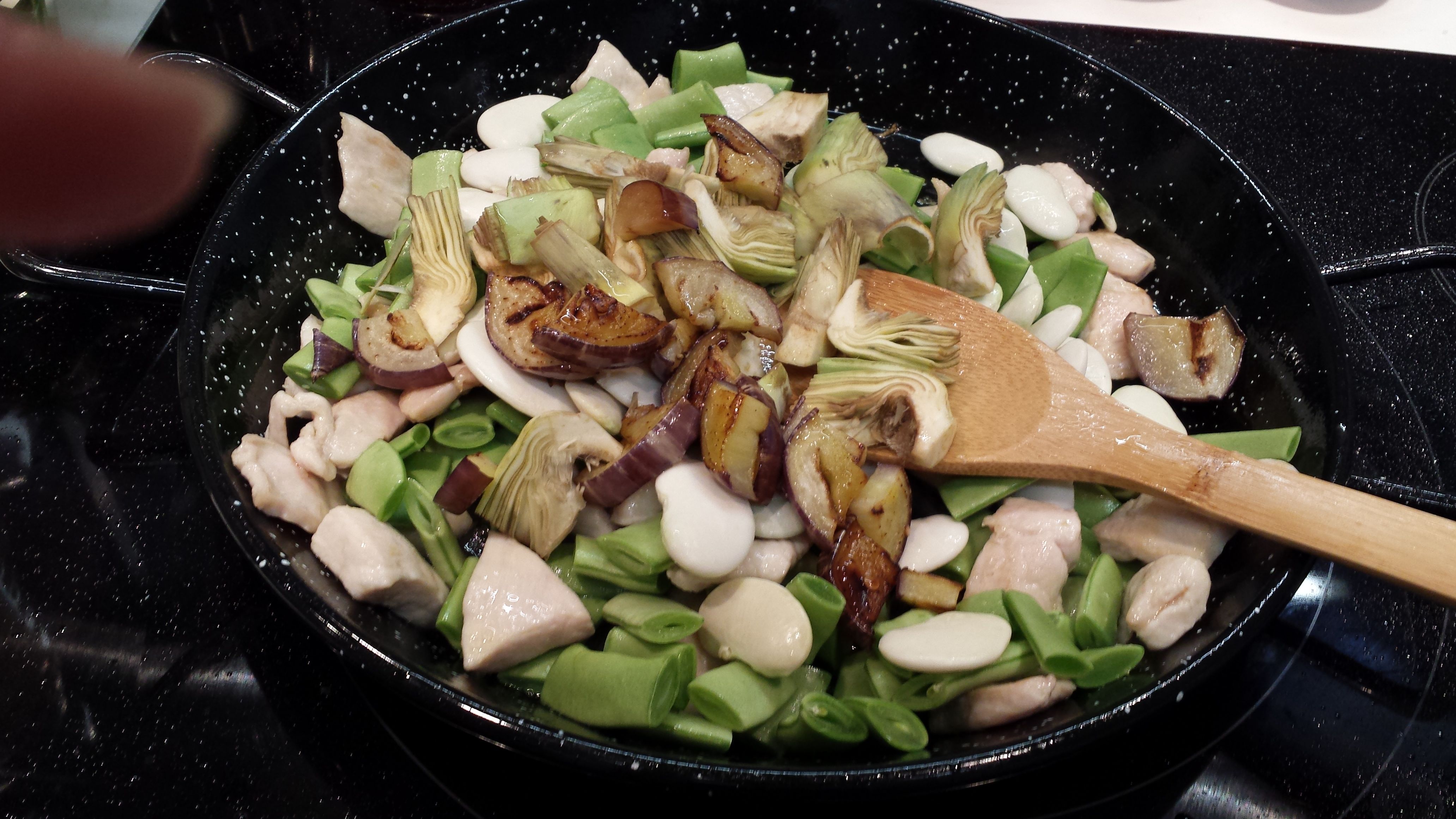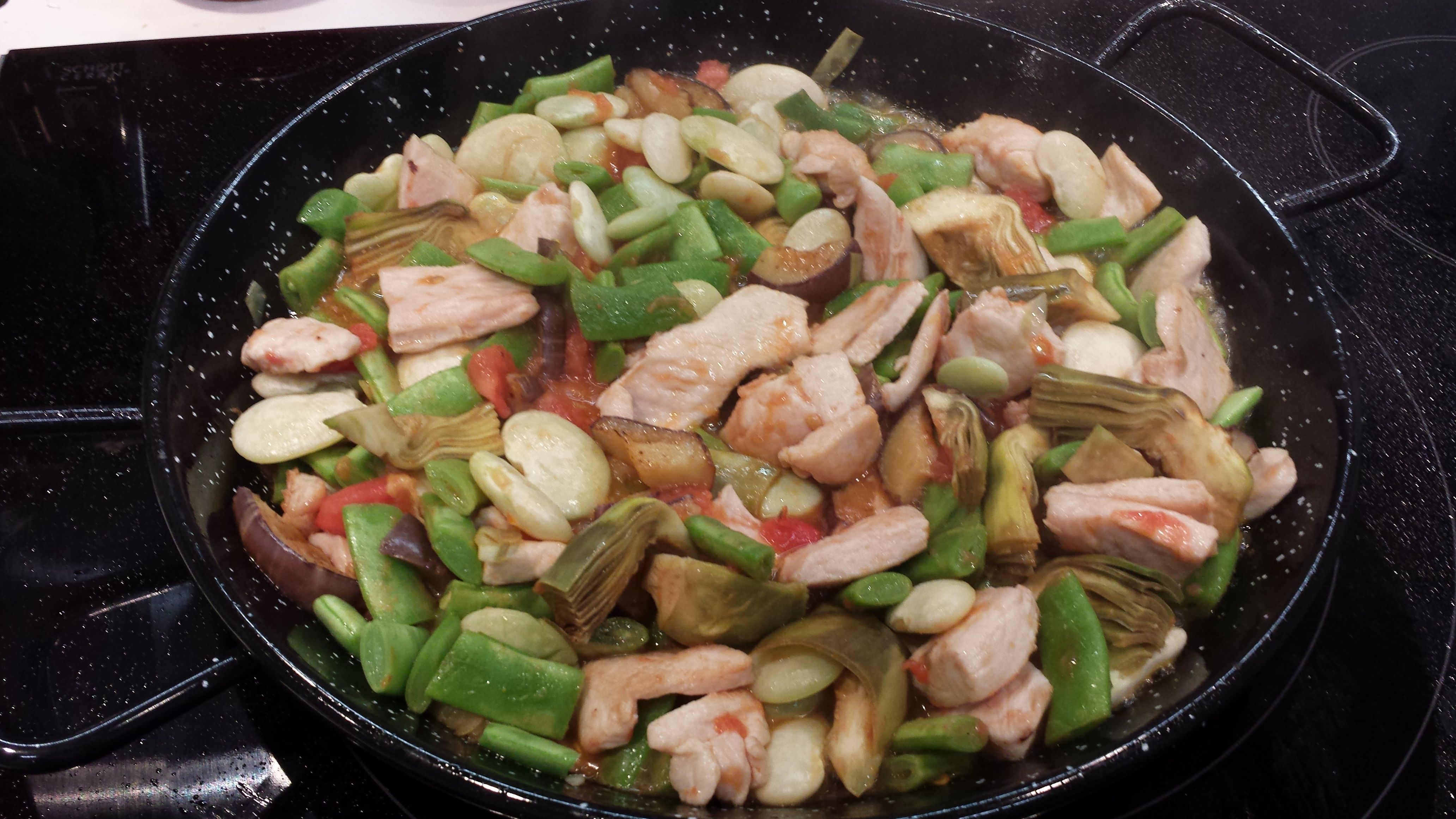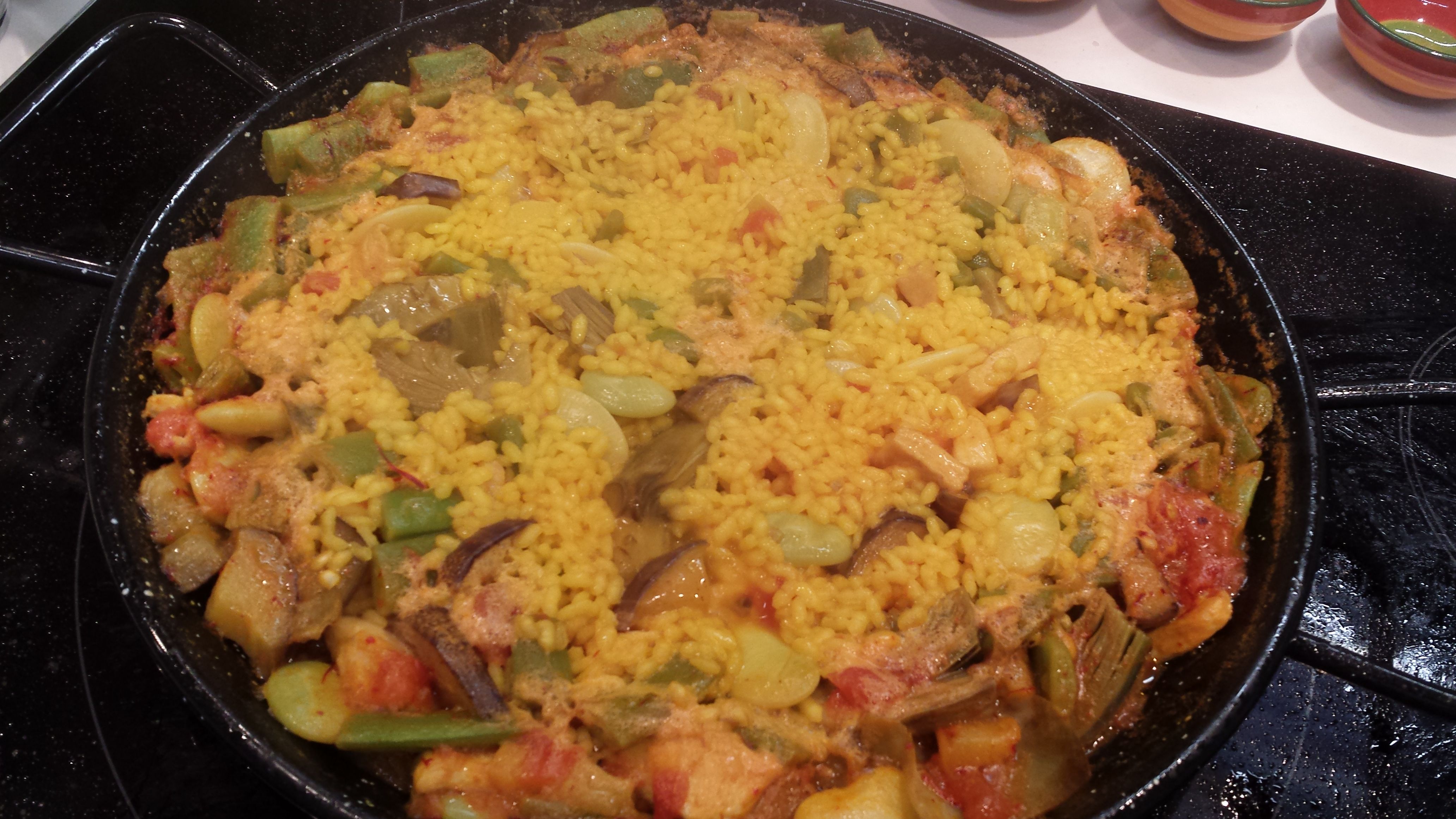 Susan and Rachel have been doing quite a bit of cooking and baking. In the past few days they have made a lemon cake, challah and rolls, two different fish dishes, a coca made with red peppers and other goodies, a coca made with caramelized onions and pine nuts and last night’s paella with chicken and vegetables.
