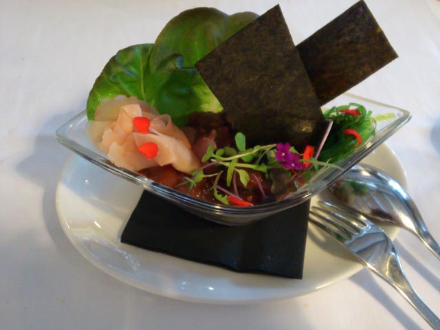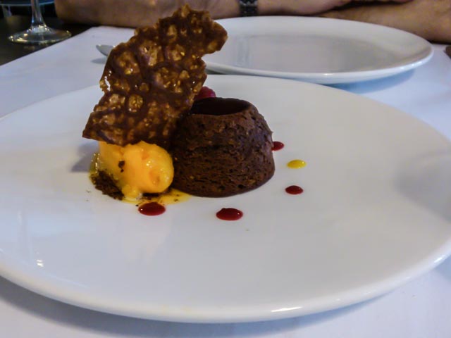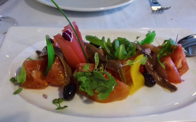 Yesterday we treated ourselves to lunch a Qtomas. Both the food and the service were excellent. We enjoyed a tomato salad with anchovies, a plate of tellinas, monkfish prepared with baby vegetables and a tuna tartare. We ordered a bottle of Albariño to accompany the meal. We split a chocolate fondue cake that was served with a tangerine ice cream and finsihed the meal with coffee and a chupito. The service was excellent.