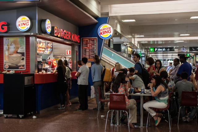 Chamartín is the ugly stepsister of Madrid’s rail stations. It is very dark and was not built to accommodate the amount of daily traffic it experiences these days. Consequently there is not enough seating to accommodate passengers who are waiting for their trains. Some of the restrooms are only accessible by long flights of stairs that necessitate your schlepping your suitcases down the stairs and then back up. It is often that one gets the opportunity to use the adjective lugubrious, but it is the perfect adjective to describe Chamartín.