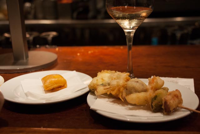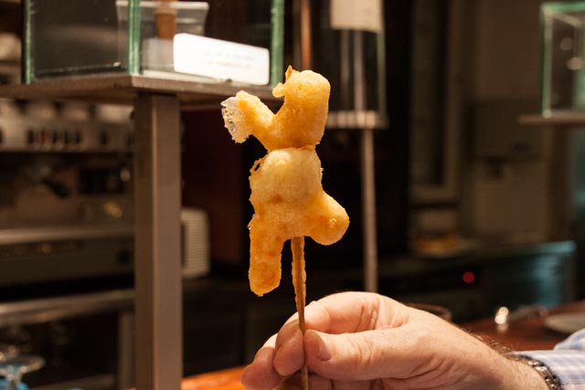 Sagartoki is known for its pinchos and its tortilla española has won both first and second prizes in national competitions. The place was jammed, but we managed to carve out a small space at the bar and tried a number of small plates besides the tortilla. If memory serves me correctly we had a tempura of vegetables, one of shrimp, some croquetas and one or two other treats. Fat and sassy we headed back to our hotel and turned in for the night.
