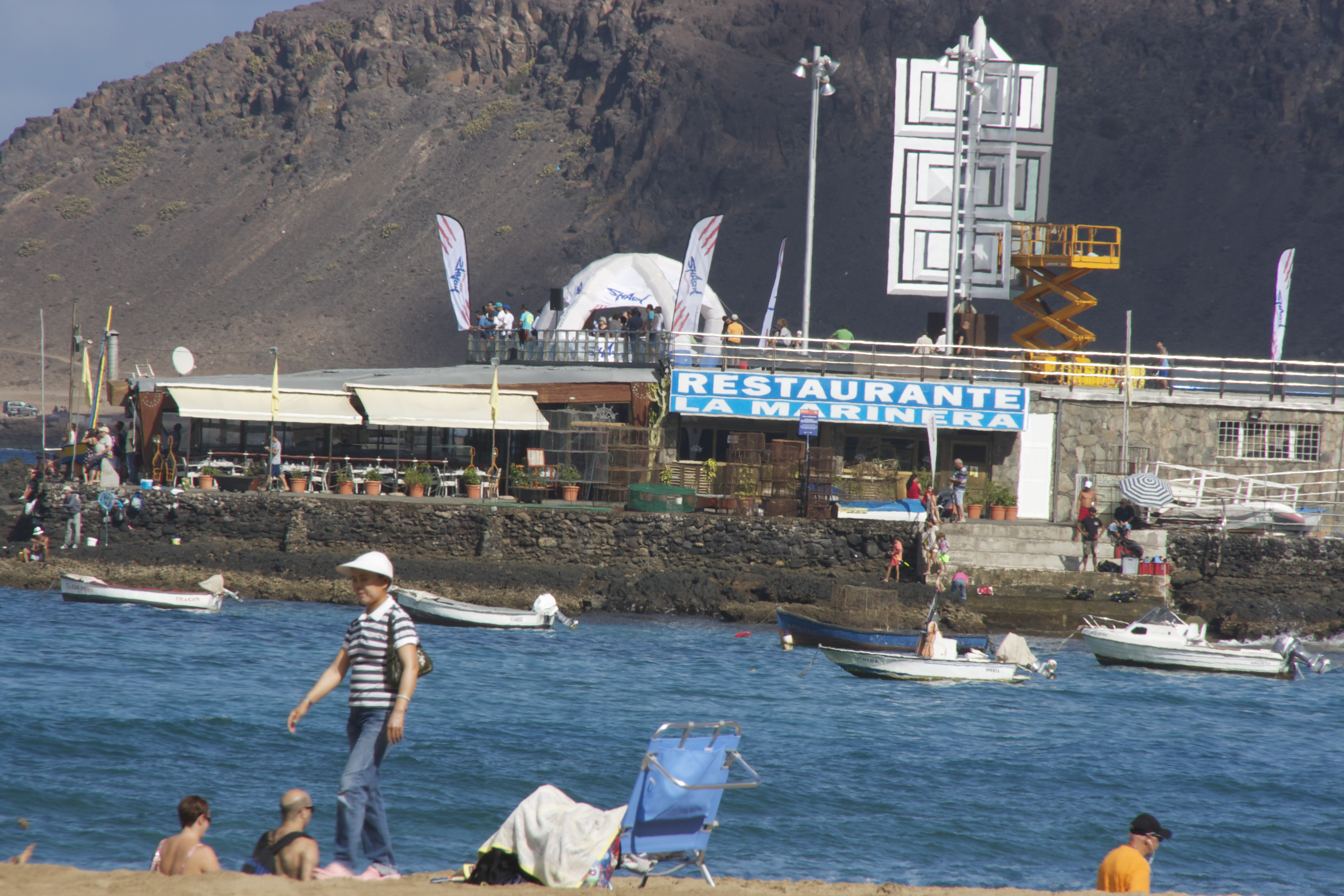 Saturday was a beach day and Juliet picked us up and transported us to Melinara, a small beach located five minutes away from their home by car. We had a drink at a seaside café while Juliet went and picked up the rest of the family. When they returned we staked out our turf on the beach and I read while everyone else frolicked in the surf. We had a reservation for 2:15 at Venecia, one of the restaurants that border the beach area. It was a good thing that we did because the terrace was full when we got there and the only open table was ours.