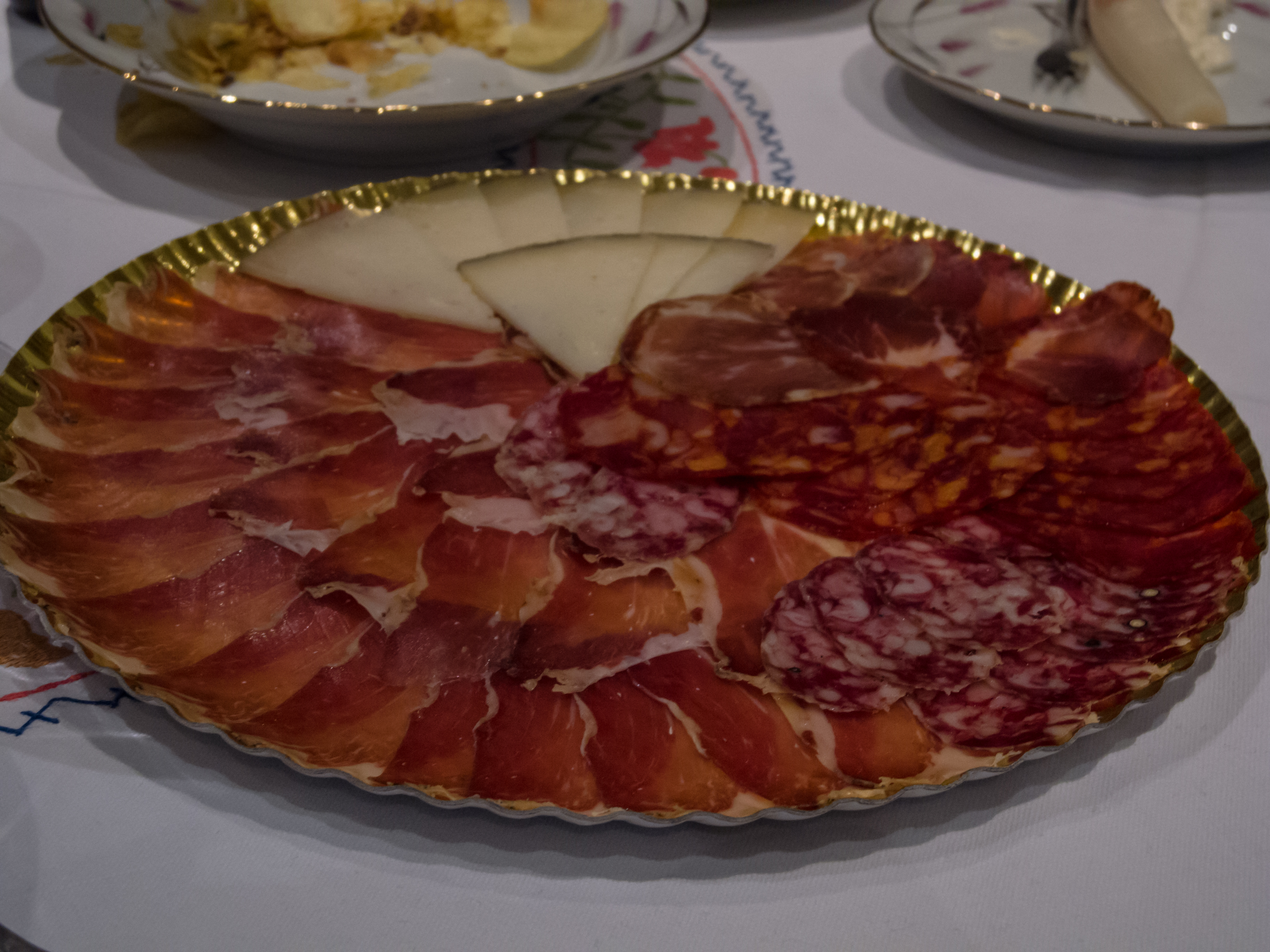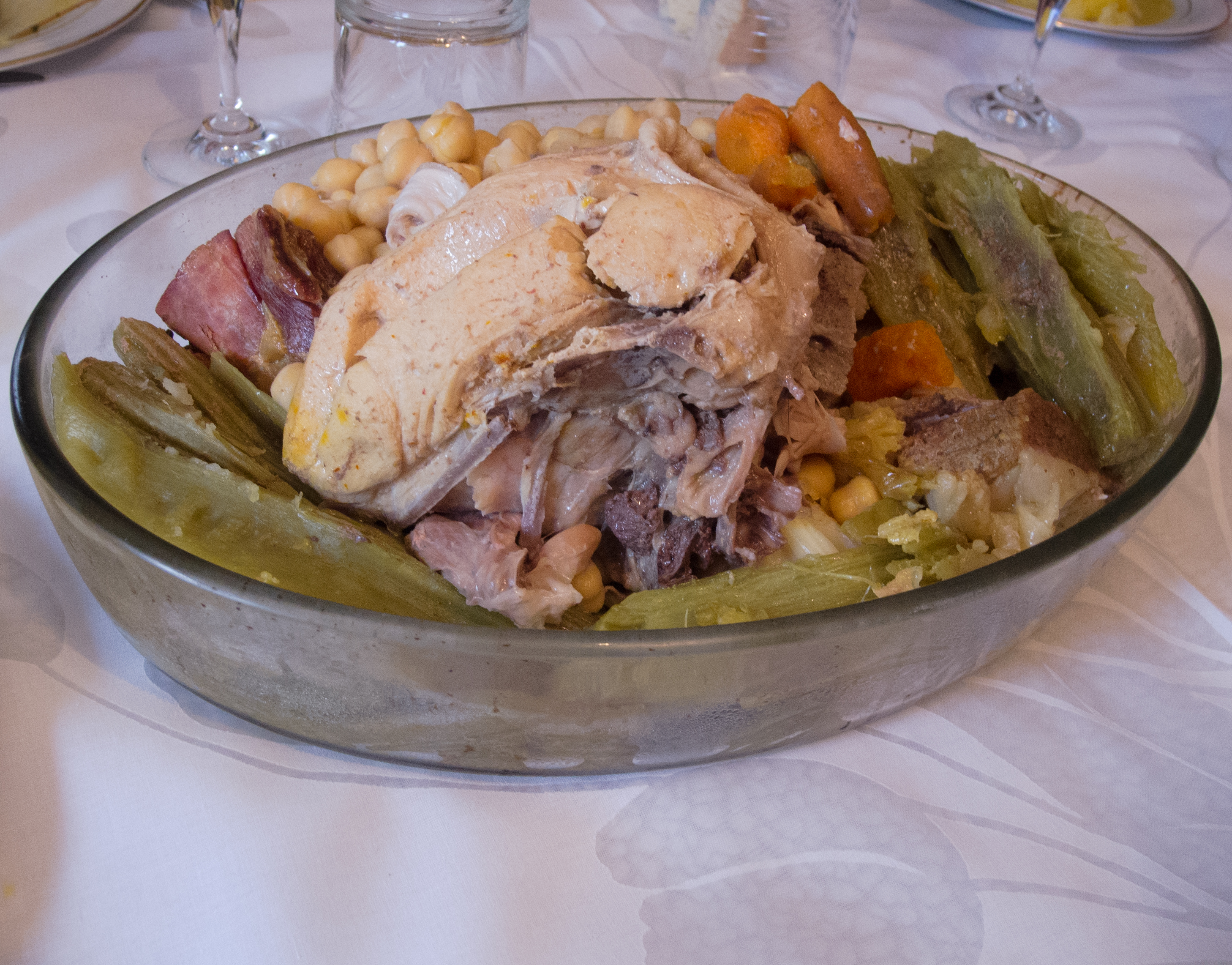 Pepe was already in Pedreguer so on Wednesday we made our way to the train station and caught the 11:41 train to Gandía. It is a quick 58 minutes from station to station and when we arrived Pepe was waiting for us. We all piled into a rather small Ford Smart and we were at Pepe’s mother’s house by 1:30. We gathered around the dining room table as the first wave of relatives came by for a visit. At one point, when I looked up, there were fourteen of us assembled around the table. In preparation for what was to be a rather substantial meal – a puchero – we warmed up our appetites with a variety of cold cuts, sardines, white asparagus and a never empty bowl of chips. At 2:30 the first wave returned to their nearby home for their meal and we made our way upstairs to María’s apartment. María is Pepe’s sister. There were twelve of us gathered around the table when lunch was served.