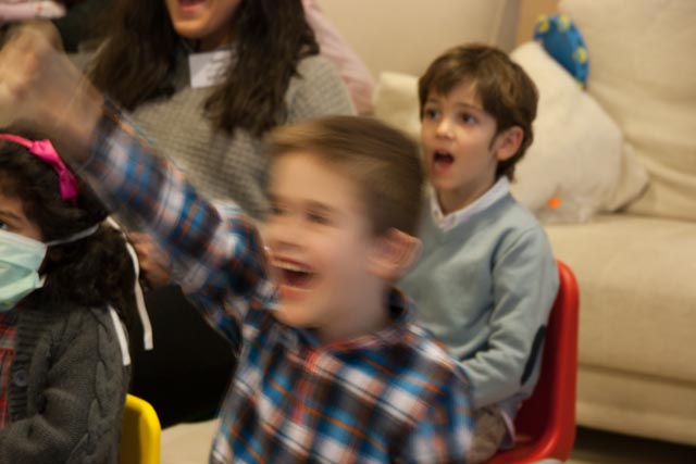 We were concerned on many levels. Having already sat for a half an hour, how much stamina would the children and their parents have now that it was our turn to perform? The other problem was having done the necessary psychological preparation to go out and perform, that energy had dissipated while we listened to song after song.