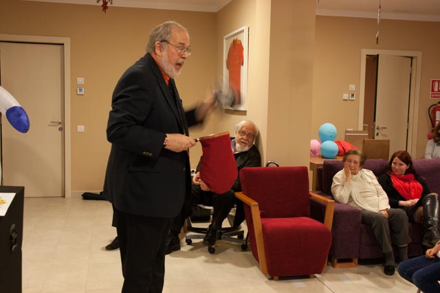 Thirty minutes later we made our way downstairs only to discover that another branch of the family had gathered around the table and was enjoying coffee and dessert. In the midst of all this celebration our friend, Jordi Morera, made an appearance. He had spent the day in Denia with his sister and her family and since he was heading back to Valencia he had kindly offered to take us along. The ride home was rather interesting because Jordi’s car was being buffeted by strong winds – winds that were strong enough to move the car from the left hand lane to the right hand lane all by itself. When we returned home I spent some time getting my things ready for Thursday’s magic show.