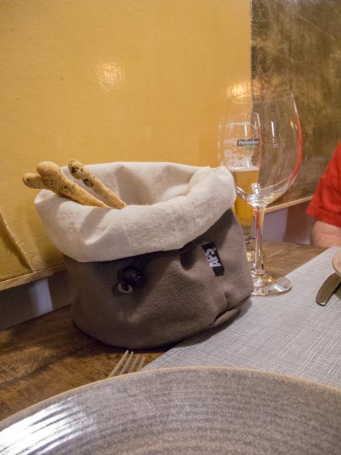 Zahava had told Susan that Josep Quintana, former owner of Torrijos, a one star Michelin restaurant, had opened a new restaurant close by the Mercado de Colón. Rumor has it that the restaurant, owned by Quintana and his wife, closed because the couple divorced. Quintana then went on to open a small restaurant in the Russafa neighborhood, which has since changed hands. He next went off to Asia to do some consulting work and has returned to Valencia. The warmth of the sun enhanced the twenty-minute walk from our house and we found the restaurant rather easily.