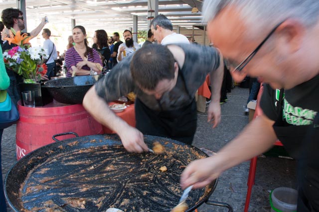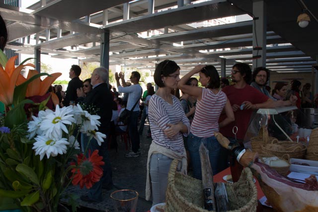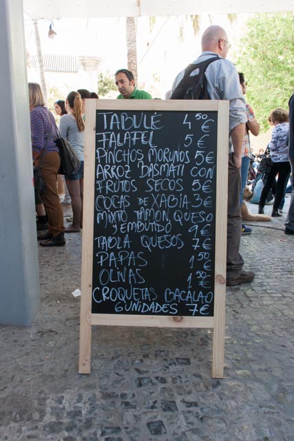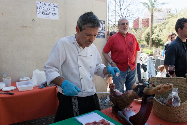 Yesterday another of Valencia’s positive attractions was on display. On a Sunday afternoon everyone gets out of their house and does whatever floats their boat. Sidewalk restaurants are filled with diners, the Turia is filled with walkers, bikers, soccer players, picnickers and young lovers and one needs to pick their way through the baby carriages that command most of the sidewalks. There is a two-month long festival of food and music that is taking place on the terrace of the MuVIM. It is called Espai Mediterrani and it is intended to be a taste of the Mediterranean just like its name says.