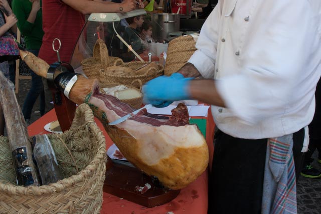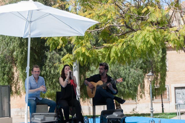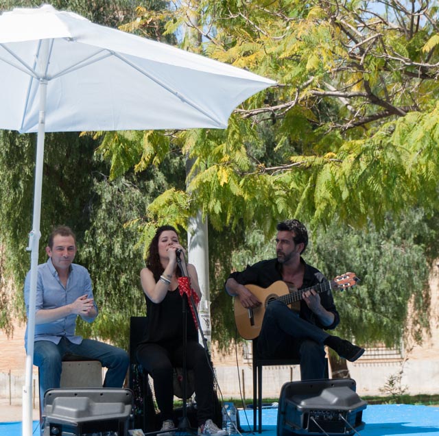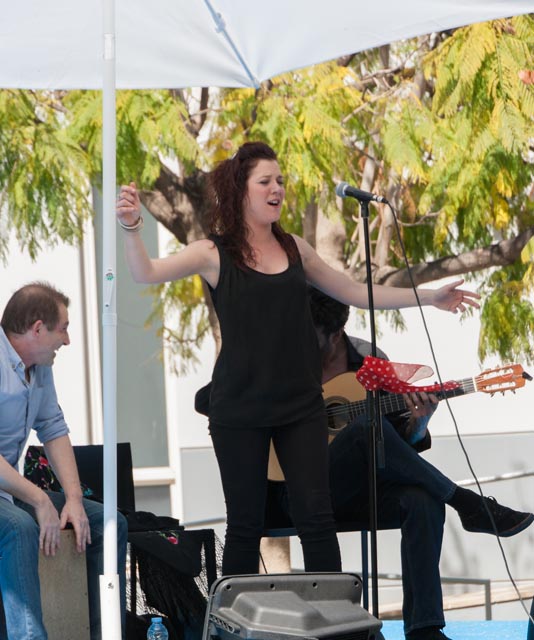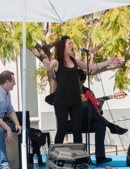 Yesterday’s performers were a small flamenco troupe consisting of a singer, a guitarist and a box player. The beer and the wine were flowing and the food choices included hand slice Serrano ham, a variety of cheeses, tabbouleh, falafel, pincho moruño, croquetas de bacalao and other goodies. There were about 200 people in attendance and the mood was festive. Susan was a busy taking photo, as you will see and I found a variety of ways to busy myself. The party ended at a little after four and there were other events that would take place later in the day. This was our major outing for the day and we spent the rest of Sunday at home.