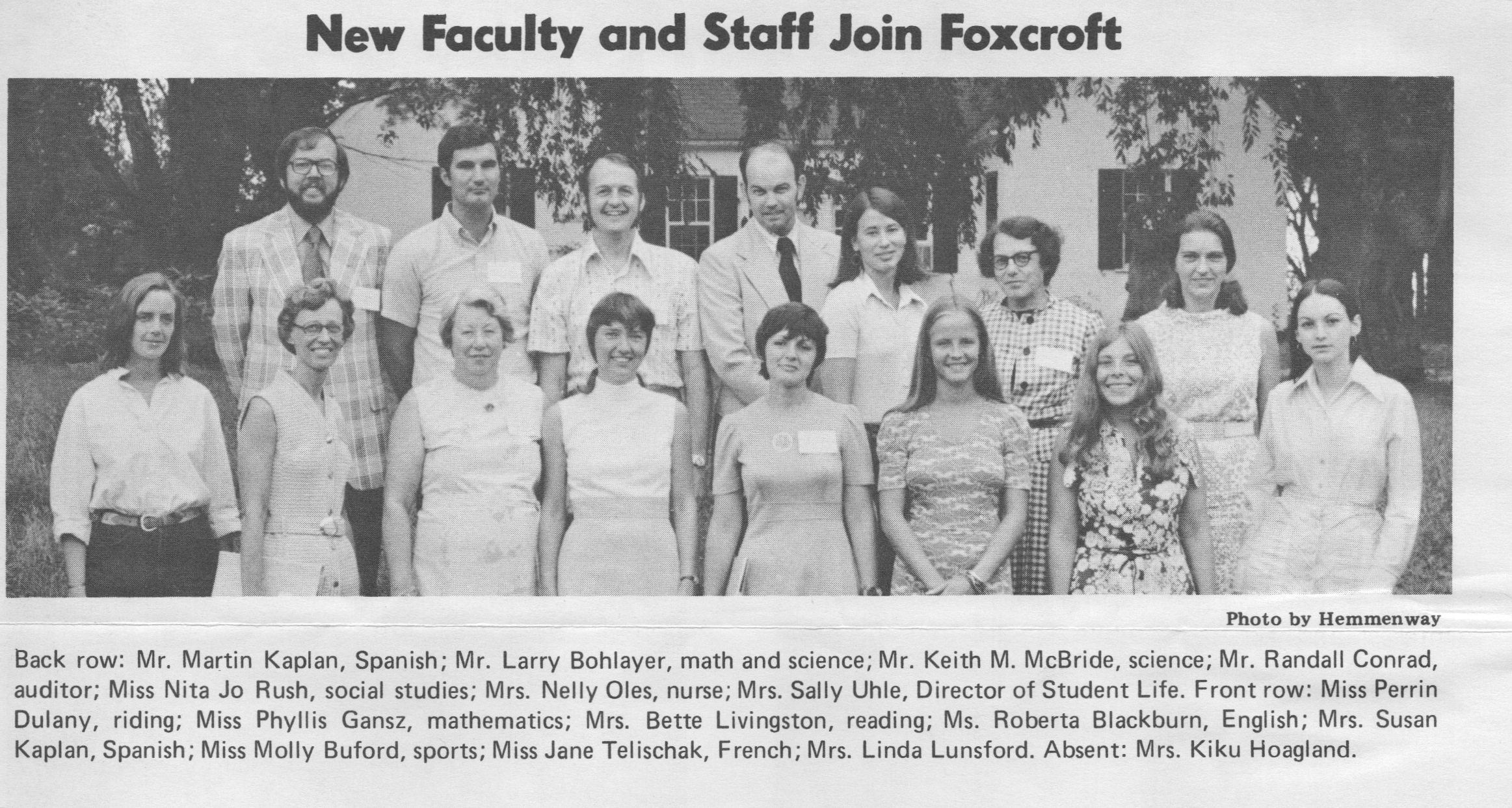 I had applied to Foxcroft in February and had heard nothing in return. The position was still open in April and I had heard nothing. Then came a phone call in May from Bob Leipheimer who was the Assistant Head back then. He invited us to come to Virginia and visit Foxcroft. We made our plane reservations and the following week we landed at Dulles.