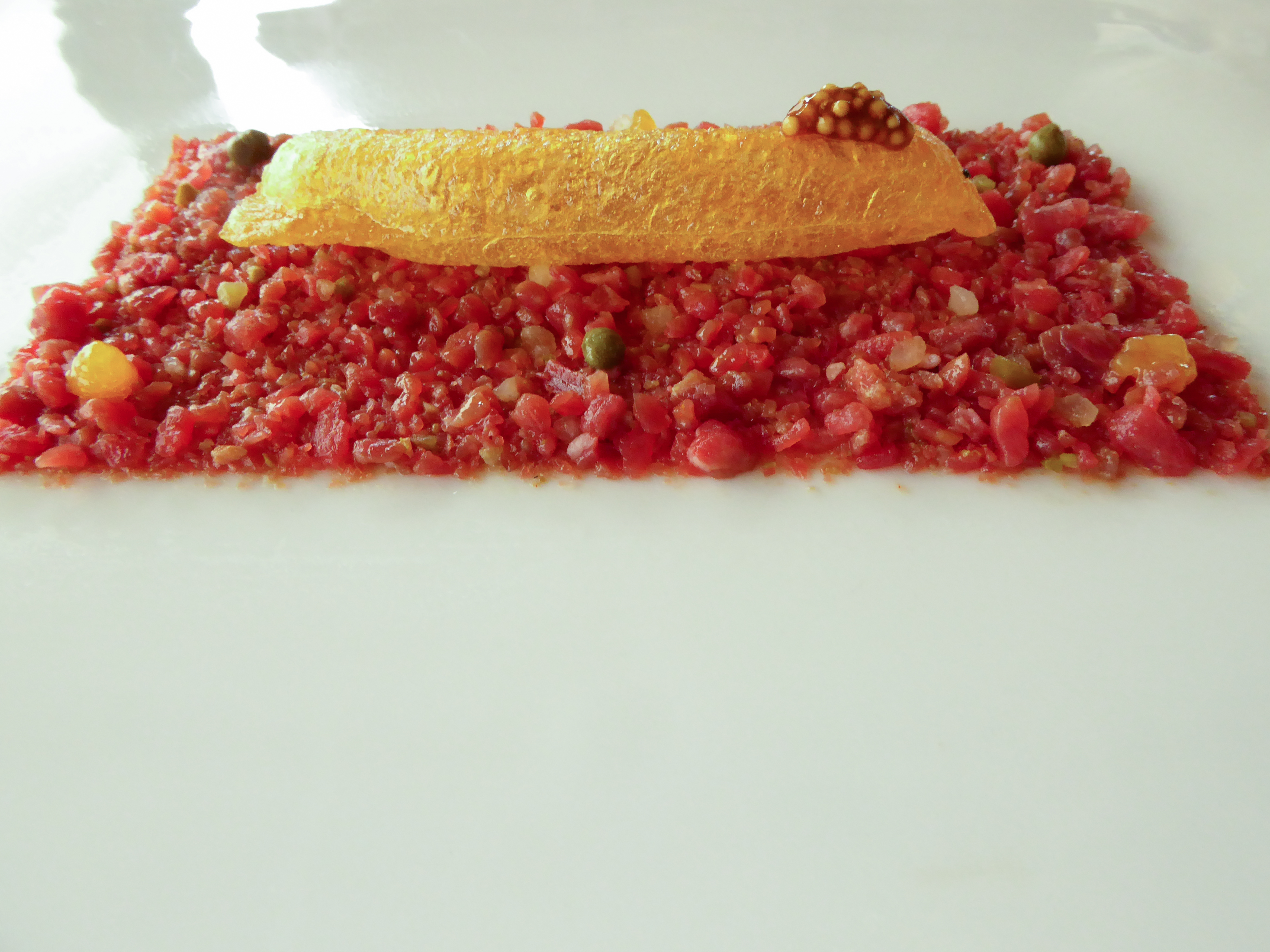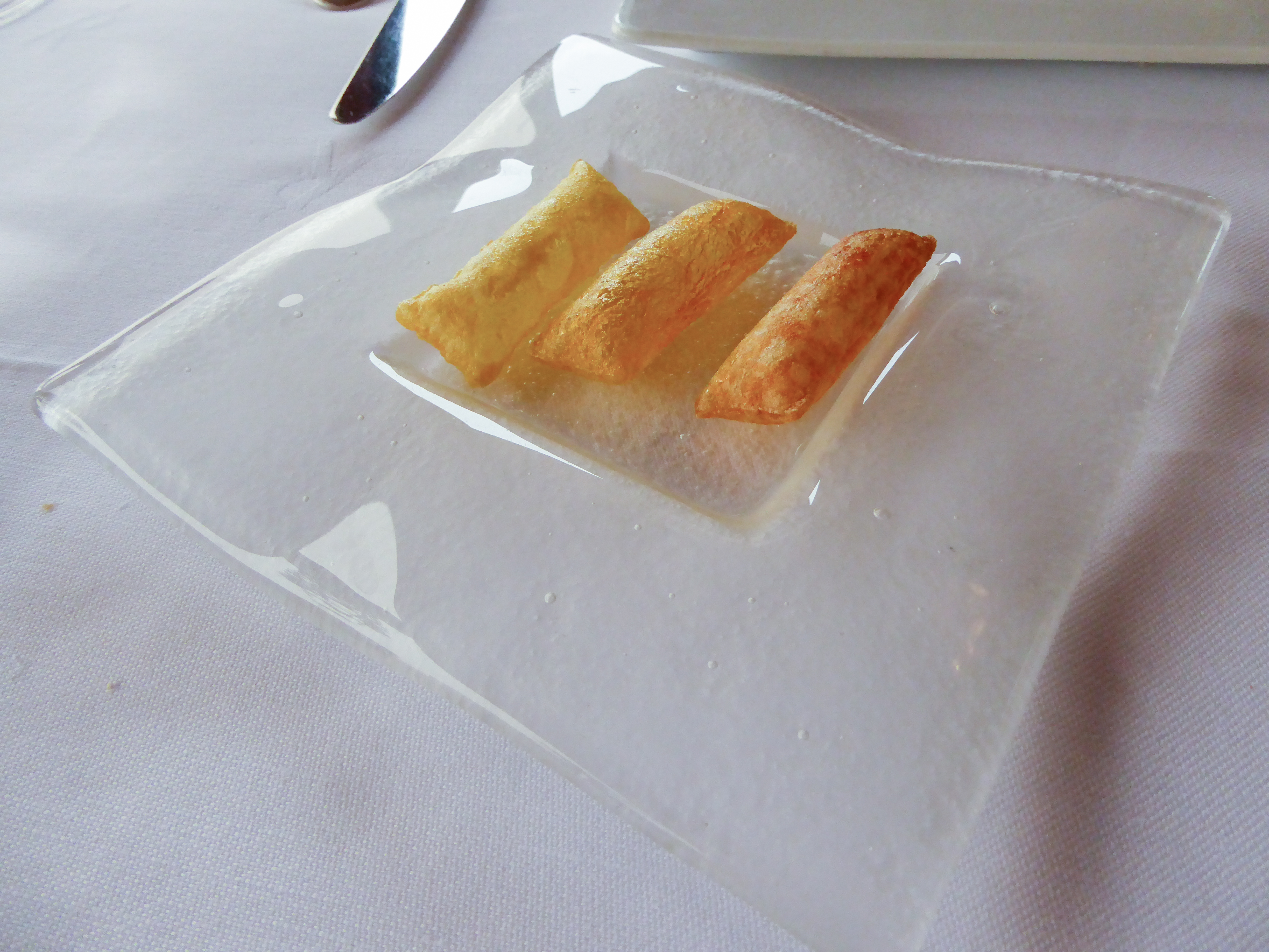 The space itself is rather spare with very few wall decorations. It is in an older building as evidenced by a toiler that has the flush tank suspended from above. The quality of the food and its presentation is in stark contrast to the plainness of the restaurant. The restaurant is owned by Paco Toledo who is originally from Chile, but has lived in Spain for a number of years.