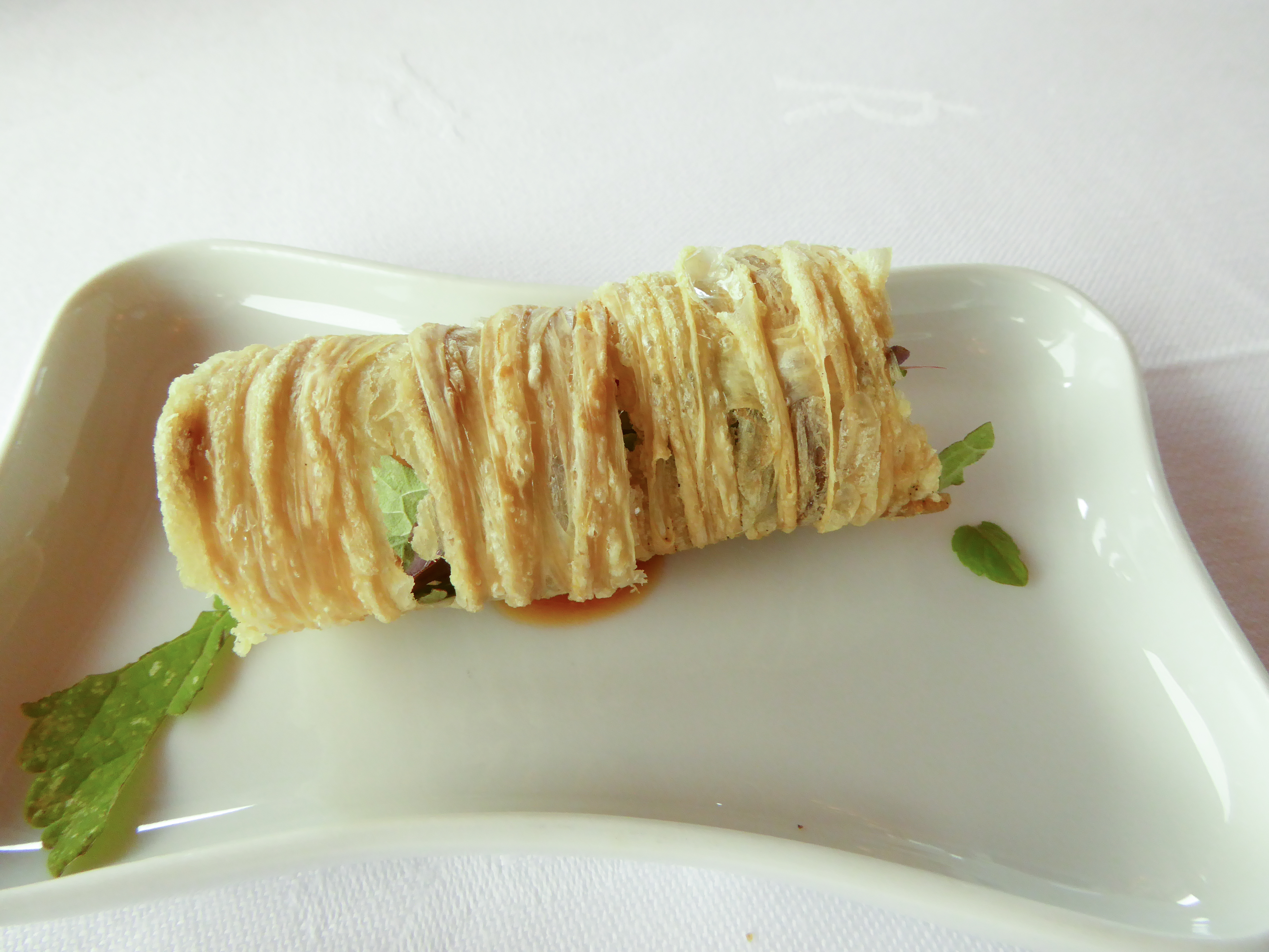 Thursday at 10:30 we boarded a train bound for Barcelona. When we arrived we took a cab to the Ayre Gran Vía Hotel and checked in. Since we had a 3:00 PM reservation at a nearby restaurant we left our bags with the front desk and had a taxi take us to a fusion restaurant called Pacífico y Sur that combines Peruvian cuisine with Asian influences. It was one of ten restaurants featured in an article that appeared in the newspaper ABC.
