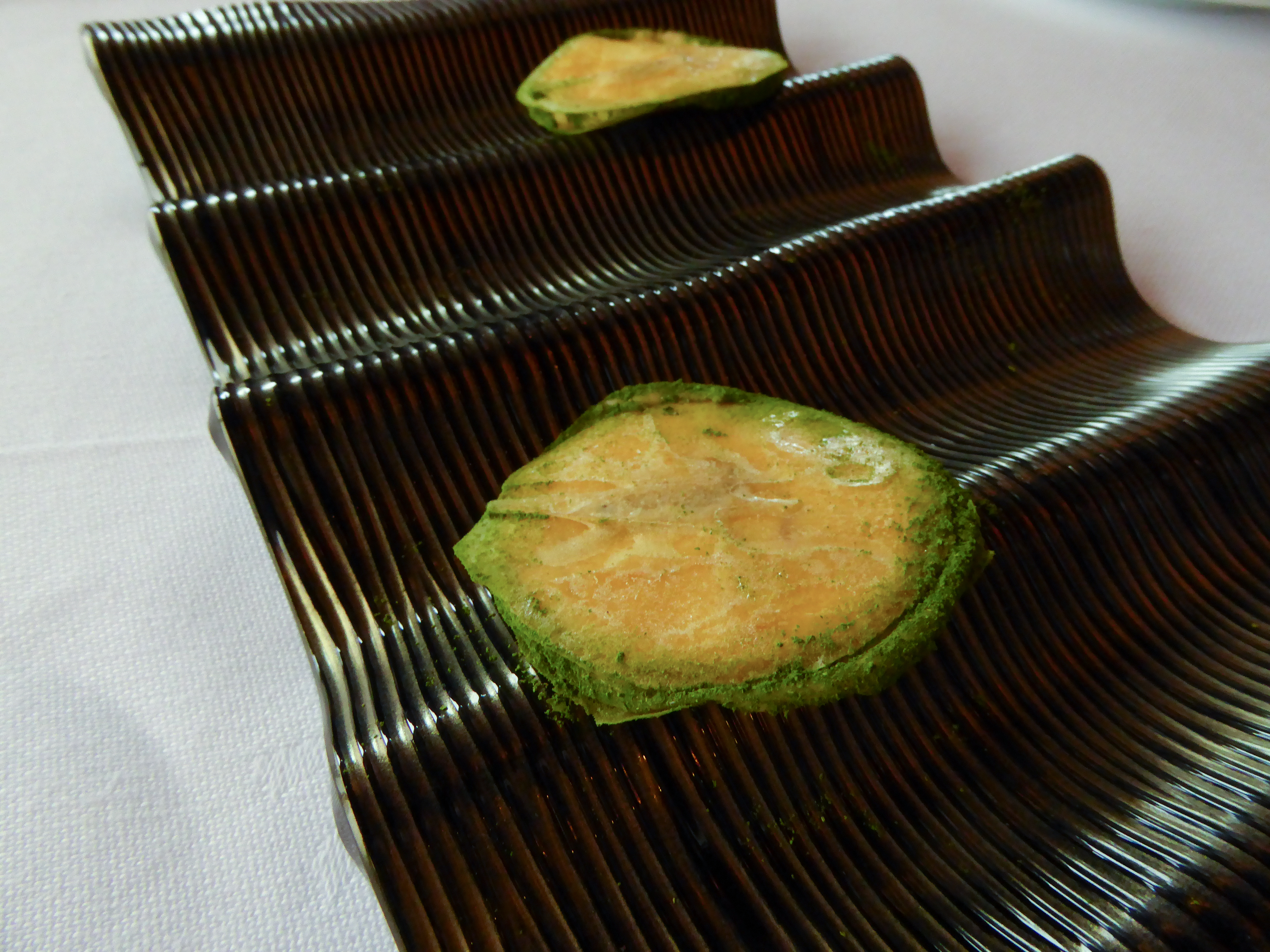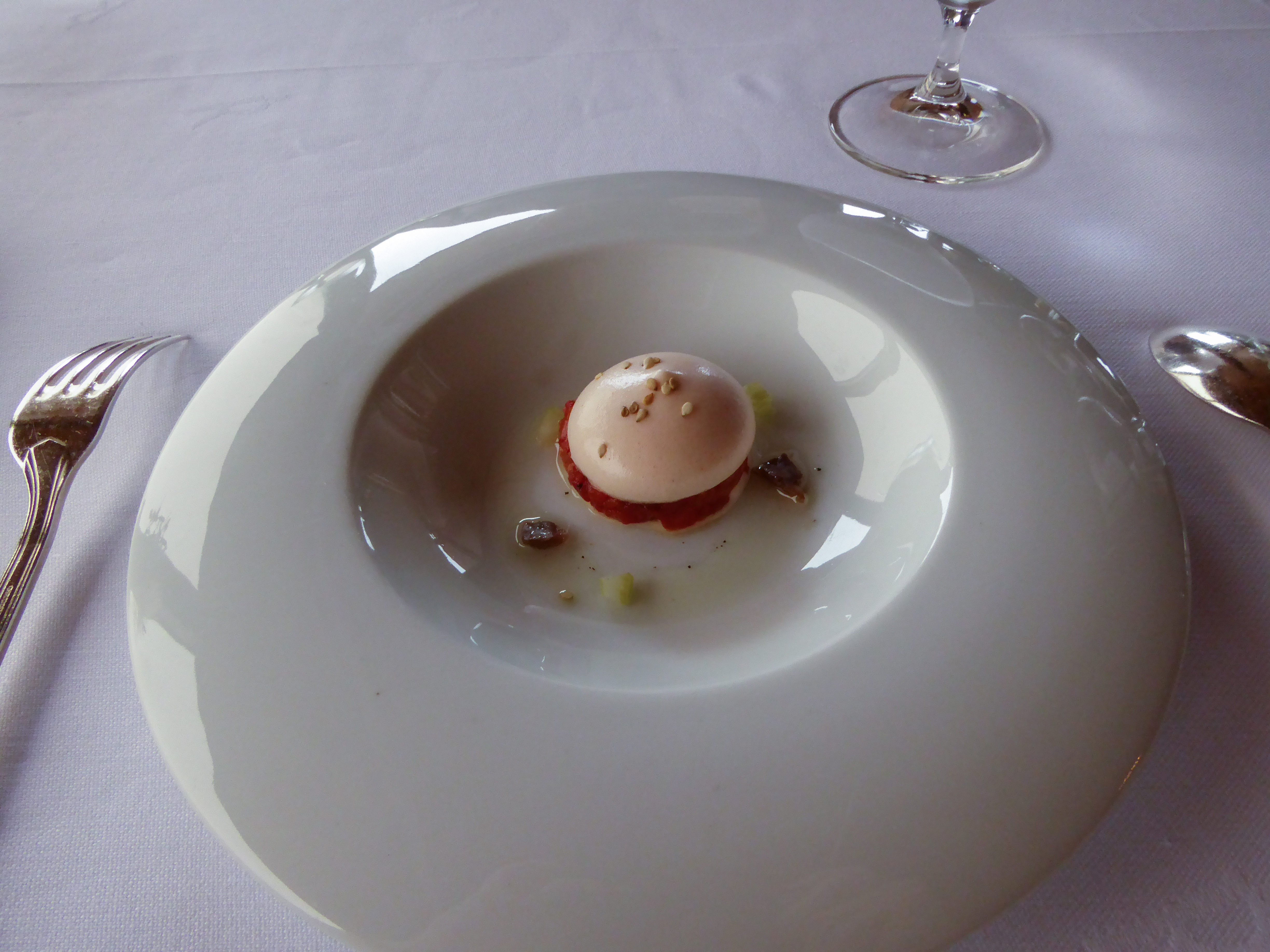We slept in on Saturday and after a light breakfast, we headed back to the hotel to get showered and dressed for our anniversary meal. The forecast was for rain, however it was only overcast when we headed out. As many of you know we had celebrated our 25th anniversary at Akelare and had an unforgettable dinner replete with wine and champagne. In the intervening 25 years it has become a three star Michelin restaurant and it features tasting menus.