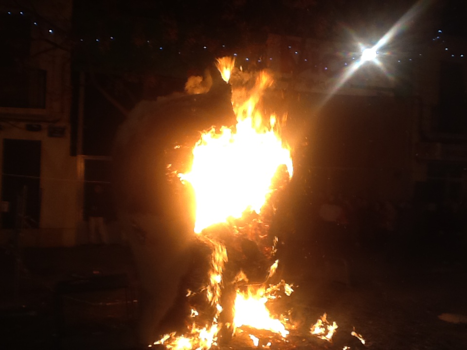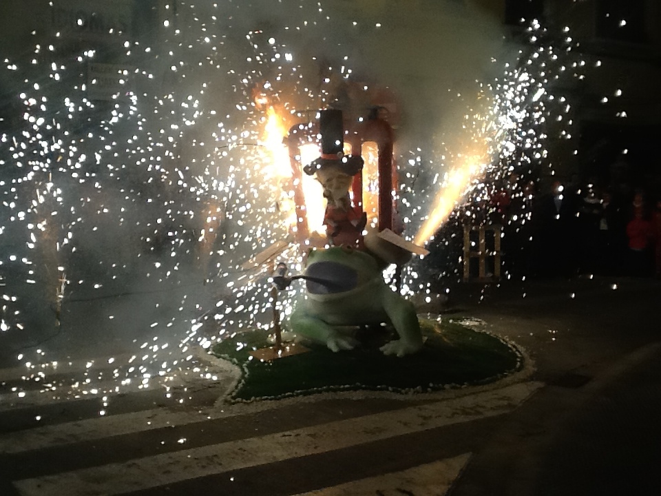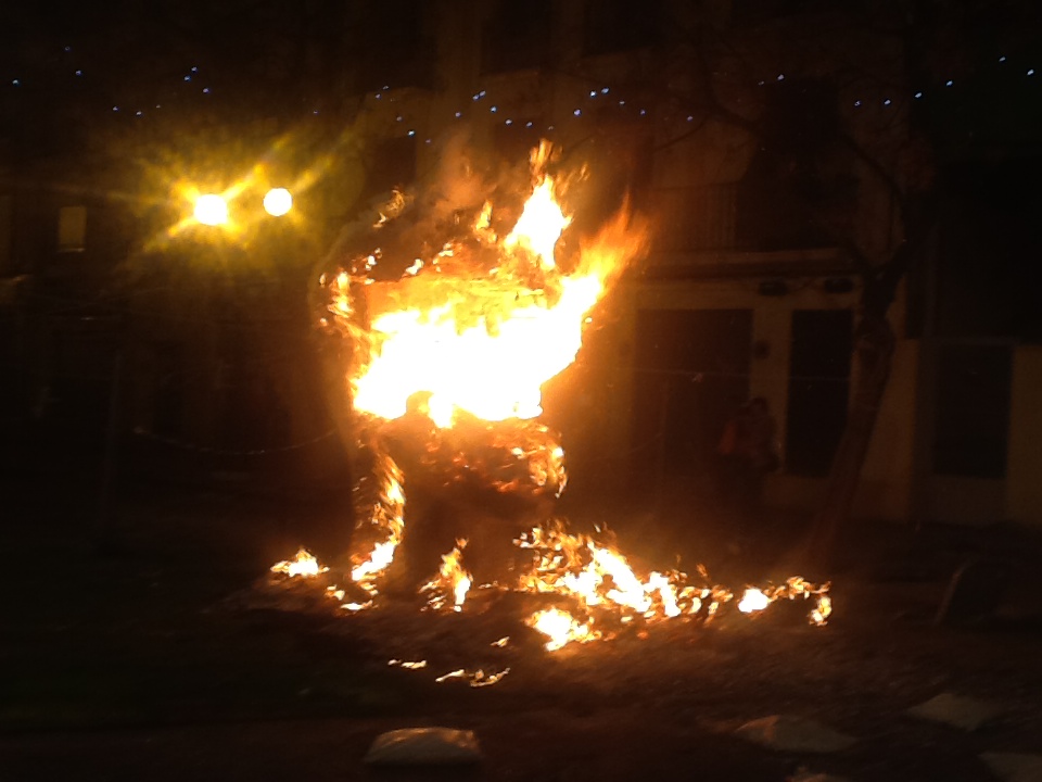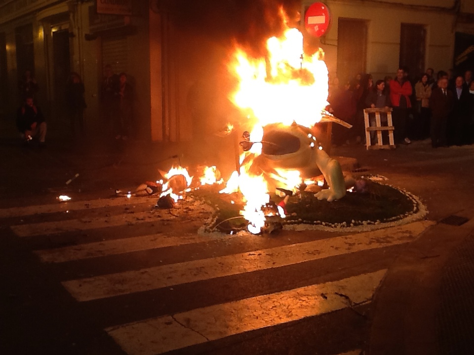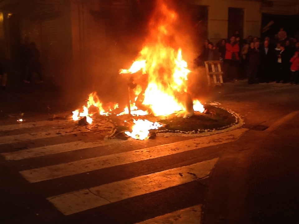 There are pyrotechnic stores that open only during Fallas and I would imagine that they sell an enormous amount of both ground and aerial firecrackers and fireworks. You hear explosions, both small and large wherever you go. The streets are approaching impassible. It took me close to ten minutes to get to the Mercado Central, which, as you know is a block away. The number of stands selling typical refreshments – churros, chocolate, buñuelos, hamburgers, hot dogs, French fries and, of course, beer – seem to have multiplied exponentially. There is a rather large hamburger stand outside of Jordi’s restaurant. I guess that both can co-exist. Carosel was filled to the rafters yesterday. The good (?) news is that the celebration is just beginning.