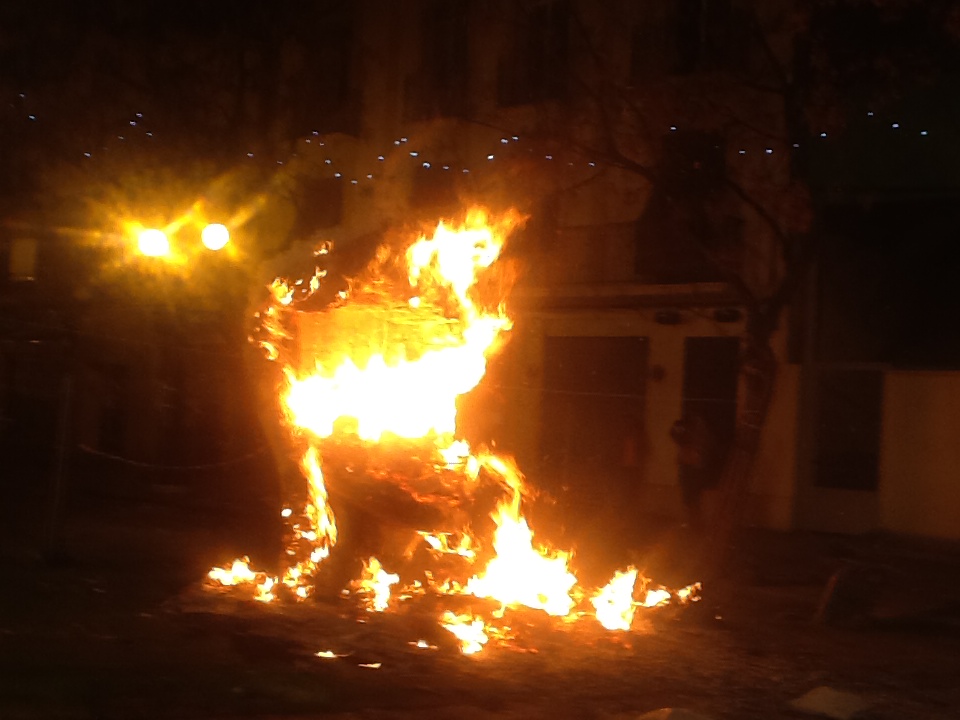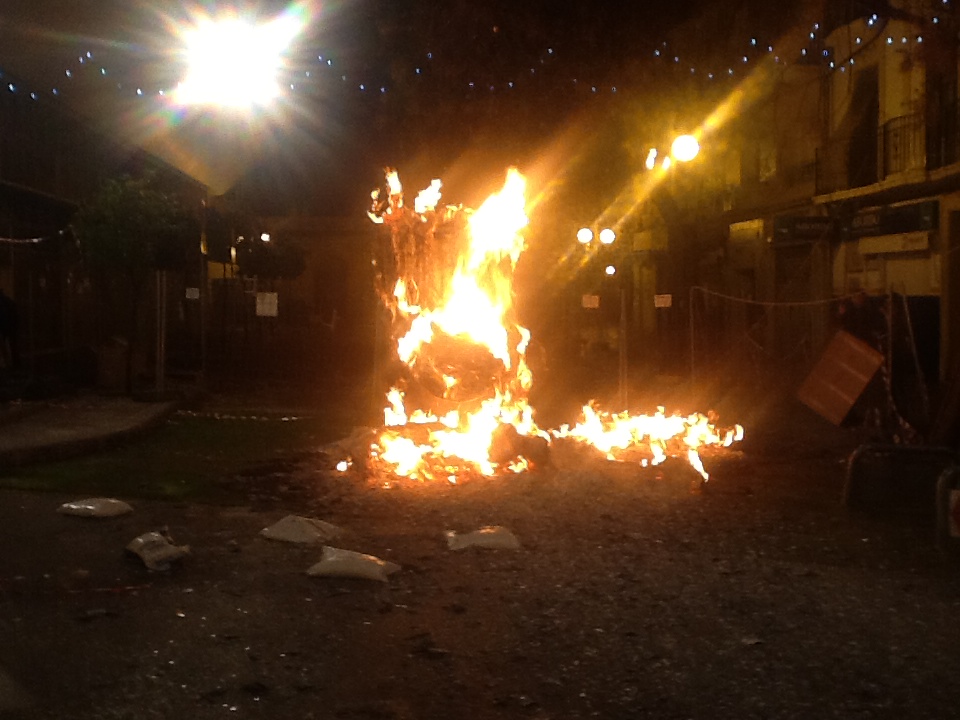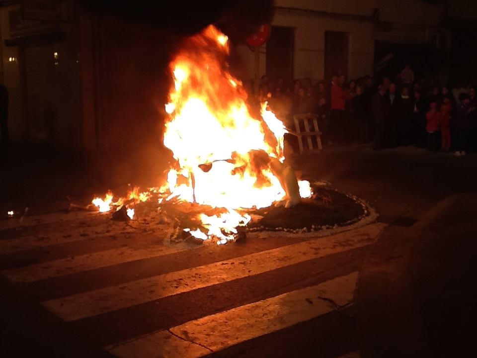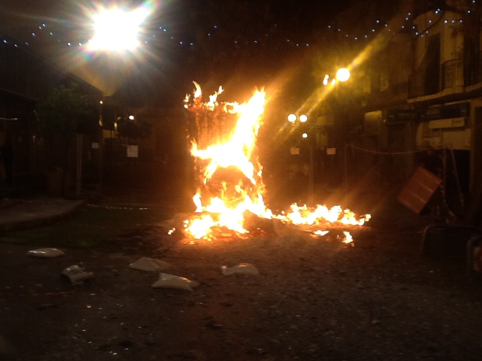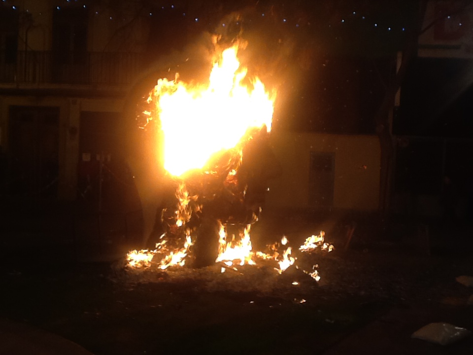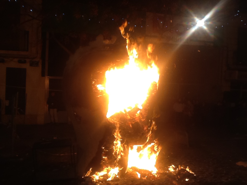 There are pyrotechnic stores that open only during Fallas and I would imagine that they sell an enormous amount of both ground and aerial firecrackers and fireworks. You hear explosions, both small and large wherever you go. The streets are approaching impassible. It took me close to ten minutes to get to the Mercado Central, which, as you know is a block away. The number of stands selling typical refreshments – churros, chocolate, buñuelos, hamburgers, hot dogs, French fries and, of course, beer – seem to have multiplied exponentially. There is a rather large hamburger stand outside of Jordi’s restaurant. I guess that both can co-exist. Carosel was filled to the rafters yesterday. The good (?) news is that the celebration is just beginning.
