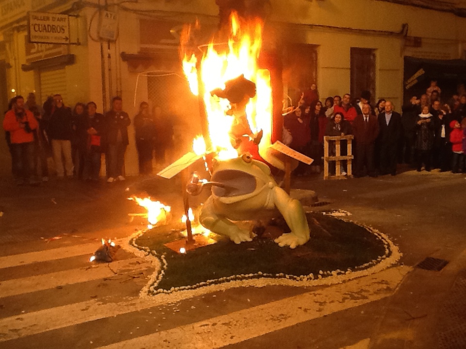 The sun has made its appearance and has magically warmed everything up. It’s in the low 70’s today and it will get warmer the next few days. Fallas is in full swing and the projected number of visitors is one million. The tent in front of our building has reappeared and so have their two fallas. Obviously the noise level outside has increased, as has the number of exploding firecrackers.