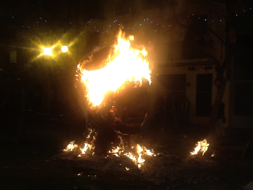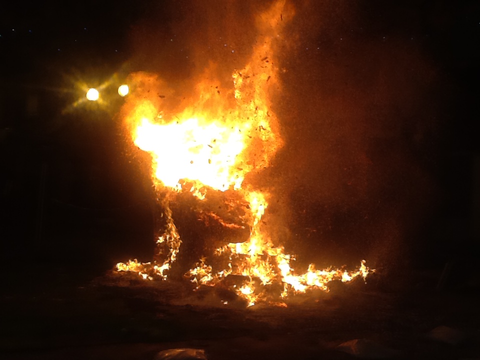 The children’s falla is a coach populated with wizards and spirits who are leaving town because children no longer have or use their imagination. The main falla is made out of pressed cardboard that has then been sculpted into the shape of a head. The hair of the figure is tied up in knots. It poses a question and that question is are you prepared to leave the knots in place and accept all ideas and beliefs that others accept and believe or are you willing to untie the knots and accept the consequences of your questioning? Each of the fallas has an explanation of their meaning in valenciano, Spanish, braille for the blind and icons for the autistic.