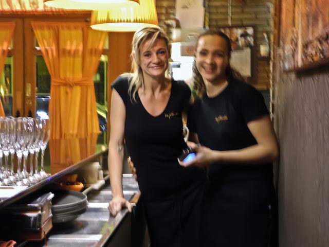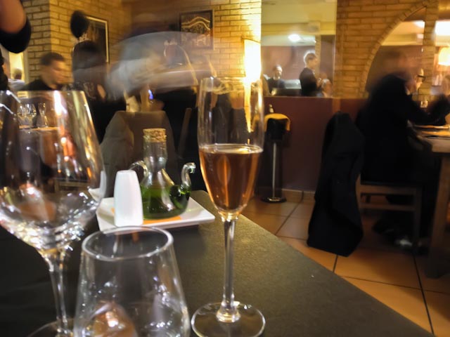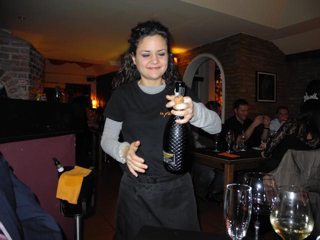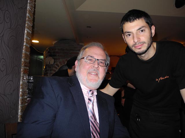 Sari and Mari Mar were hanging a huge banner at the entrance. Jordi Morera was putting the finishing touches to the dishes he had prepared for the event. Pepo, tonight’s event planner, was chilling down the champagne and setting up the glasses for tonight’s champagne, wine and liqueurs. Since Pepe did not show up until close to 9:30 we had achance to chat with a number of the invited guests. I estimated that there were forty people at this event.