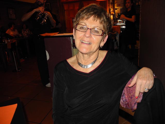 While the tables were being cleared a second time so that the dessert and the liqueurs could be set out, Pepe was presented with a number of gifts. We had all signed a T-shirt and hat and Pepe put them on and posed for a number of pictures. Several of the guests performed some magic and then came the last element of the surprise. Pepo had engaged the services of his favorite singer to come and serenade Pepe. She started off with a jazz rendition of Happy Birthday and followed up with another five or six songs. While we listened to her we enjoyed a coca de nueces that had been made by Jordi and glasses of mistela and orujo. The party was winding down at 12:30 when we left and it was about 2:00 when we felt that our meal had digested sufficiently for us to go to bed.