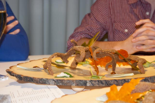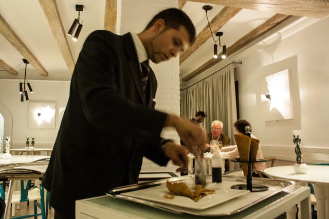 We started the meal with a series of small plates that included marinated mussels, a little purse of goat cheese with a pumpkin jam, an octopus salad and thinly sliced pieces of pork loin. Susan chose the lamb for her main course and I had the veal. Alongside the mains we were served mashed turnips, new potatoes, spinach and a medley of cooked vegetables. We enjoyed a lovely bottle of Portuguese white and we were happy campers. After dessert, a slice of orange cake for Susan and a wicked chocolate praline for me we went on our way and headed back to hotel for some R and R. Our evening was uneventful and once again we enjoyed a nightcap in the hotel’s lobby bar.