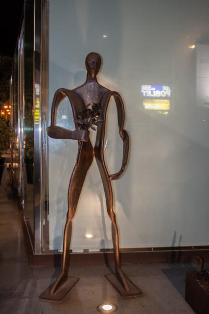Back to the hotel we went and we began to get things in order for packing our bags. Around 9:00 we went in search of a bite to eat and discovered a small place on the Avenida de Libertade called El Café Imperial. Our waiter was extremely personable and he recommended the steak served on a burning hot stone and we accepted his suggestion. It was a good call. The steak was tasty and tender and you got to cook each slice to your desired degree of doneness. The steak was served alongside an enormous plate of fries. Susan had rice pudding for dessert and I helped her finish it. Then it was back to the hotel to finish the task of packing.